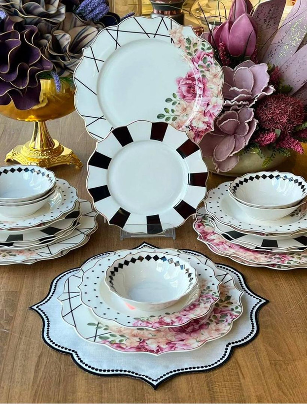 سرویس غذاخوری ۶ نفره ۲۴ پارچه با طرح گل رز Pink&More ترکیه unigoods.ir