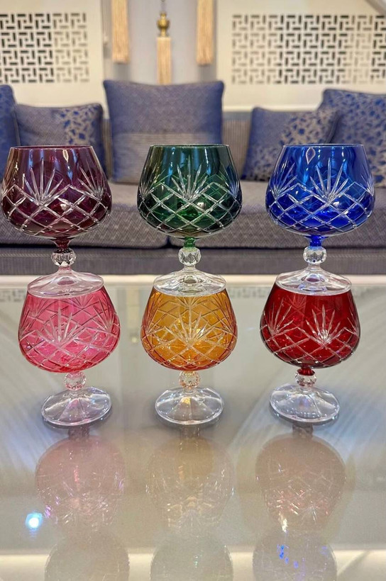 ست پذیرایی تمام کریستال تراشدار6نفره از جام های پایه دار ترکیه
