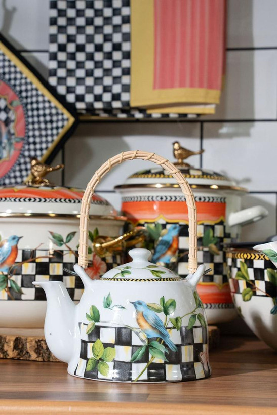 قوری طرح گنجشک ترکیه با دسته حصیری (unigoods.ir)
